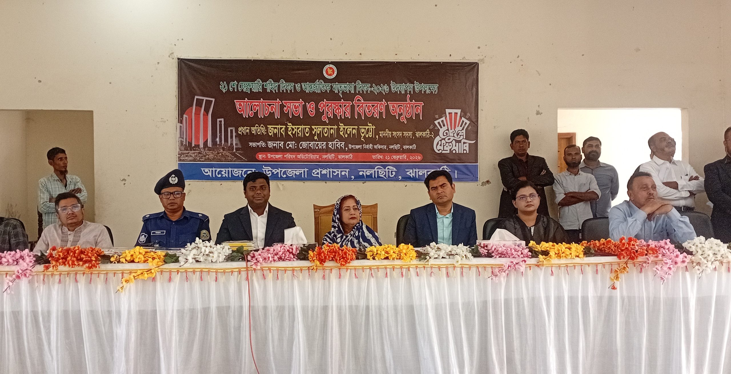 নলছিটিতে মহান শহীদ দিবস ও আন্তর্জাতিক মাতৃভাষা দিবস উদযাপন: আলোচনা সভা ও পুরস্কার বিতরণ অনুষ্ঠিত।